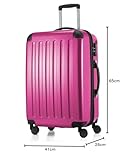 - FÜR DEN KURZURLAUB: Der Hartschalen-Trolley der Größe 65 x 41 x 26 cm (HxBxT) ist mit seinen angenehmen 4,2 kg sowie großzügigen 74 Litern wie geschaffen für Reisen von 1-2 Wochen - z.B. Citytrips, Geschäftsreisen oder Wellnessurlaub.