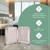 - LIEFERUMFANG: 1 x Hartschalenkoffer Handgepäck Trolley mit TSA Schloss; Maße: 55 x 40 x 20 cm (erfüllt IATA Norm Bordtrolleymaß); Volumen 41 Liter - Gepäck für ca 3 Tage; Gewicht 2,6 kg; Farbe Rosé