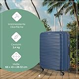 - Volumen und Erweiterbarkeit: Mit einem Volumen von 73 Litern eignet sich der Trolley ideal für Reisen von 1 bis 2 Wochen. Dank einer cleveren Erweiterungsfunktion bietet er zusätzlichen Platz für Souvenirs oder zusätzliche Reiseutensilien.